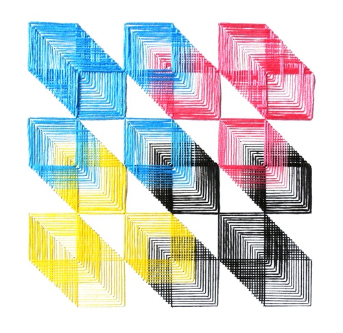 CYMK squares, Evelin Kasikov, rayon on paper, 2014